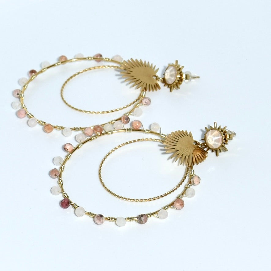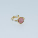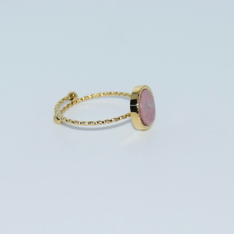 • Bague rĂ©glable en acier inoxydable avec pierre naturelle en rhodocrosite accompagnĂ© de ces magnifique crĂ©oles.