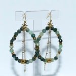 • Bague rĂ©glable en acier inoxydable avec pierre naturelle en rhodocrosite accompagnĂ© de ces magnifique crĂ©oles.
