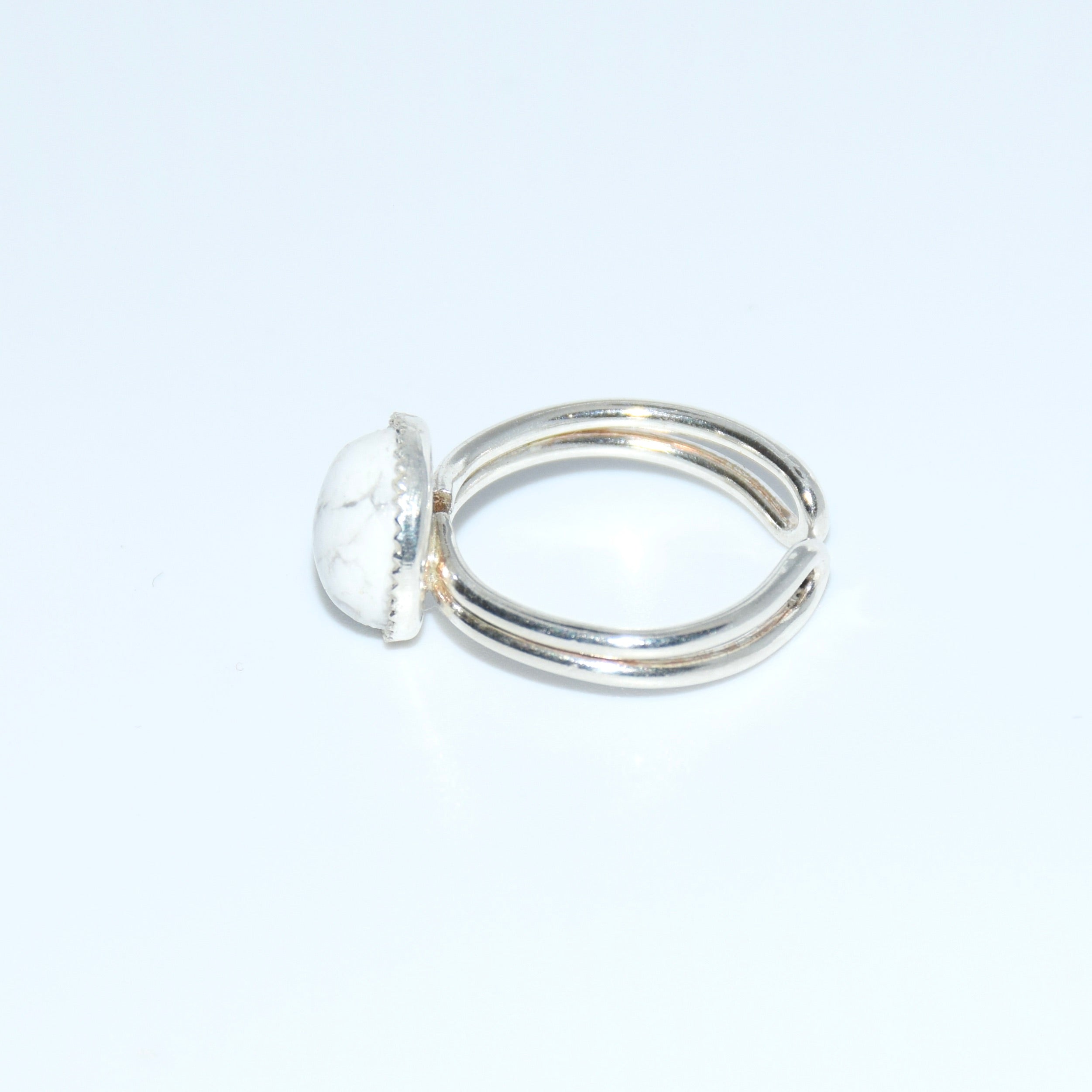 • Bague réglable en argent 925/1000 avec pierre naturelle en howlite.