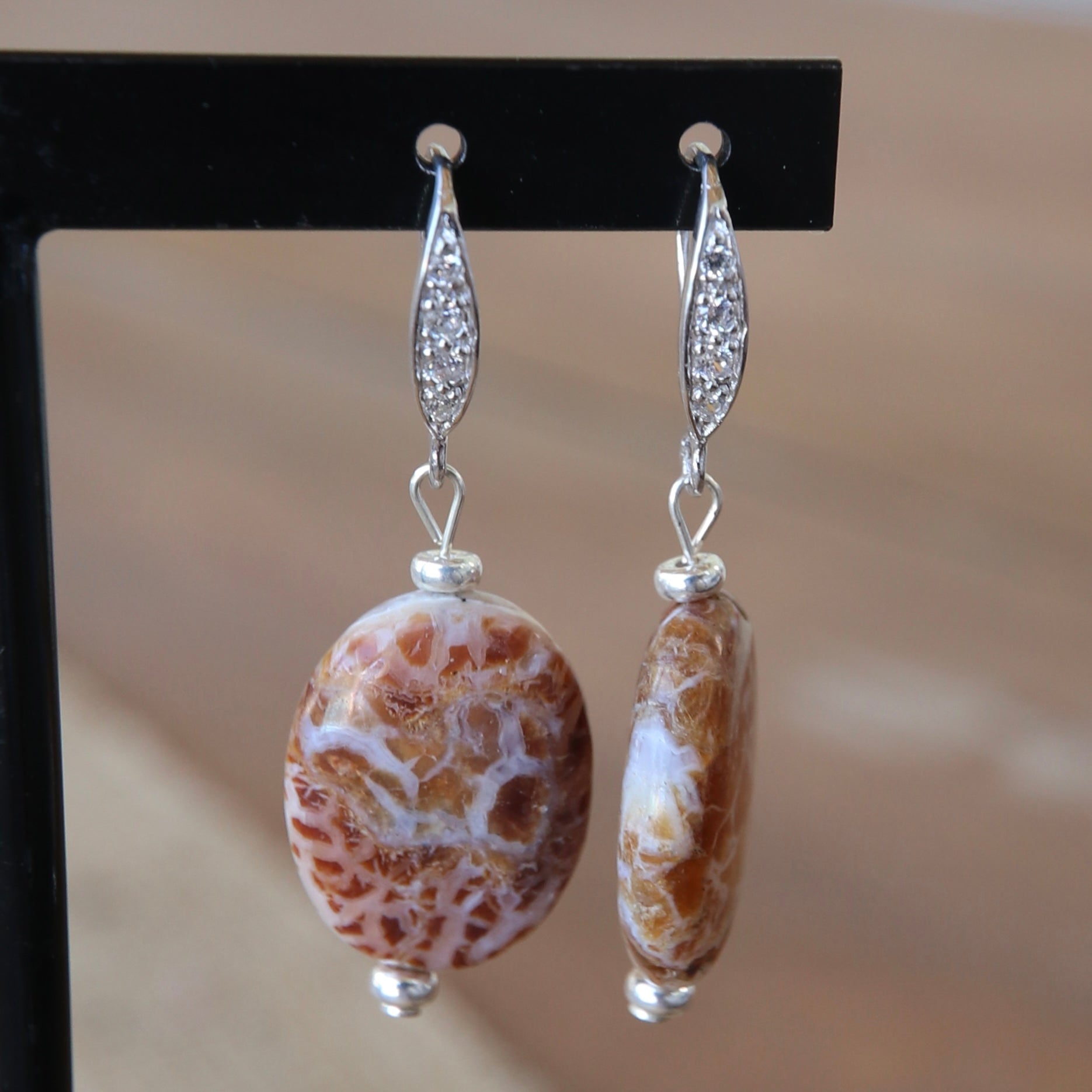 Boucles d'oreilles en agate monté sur argent 925/1000