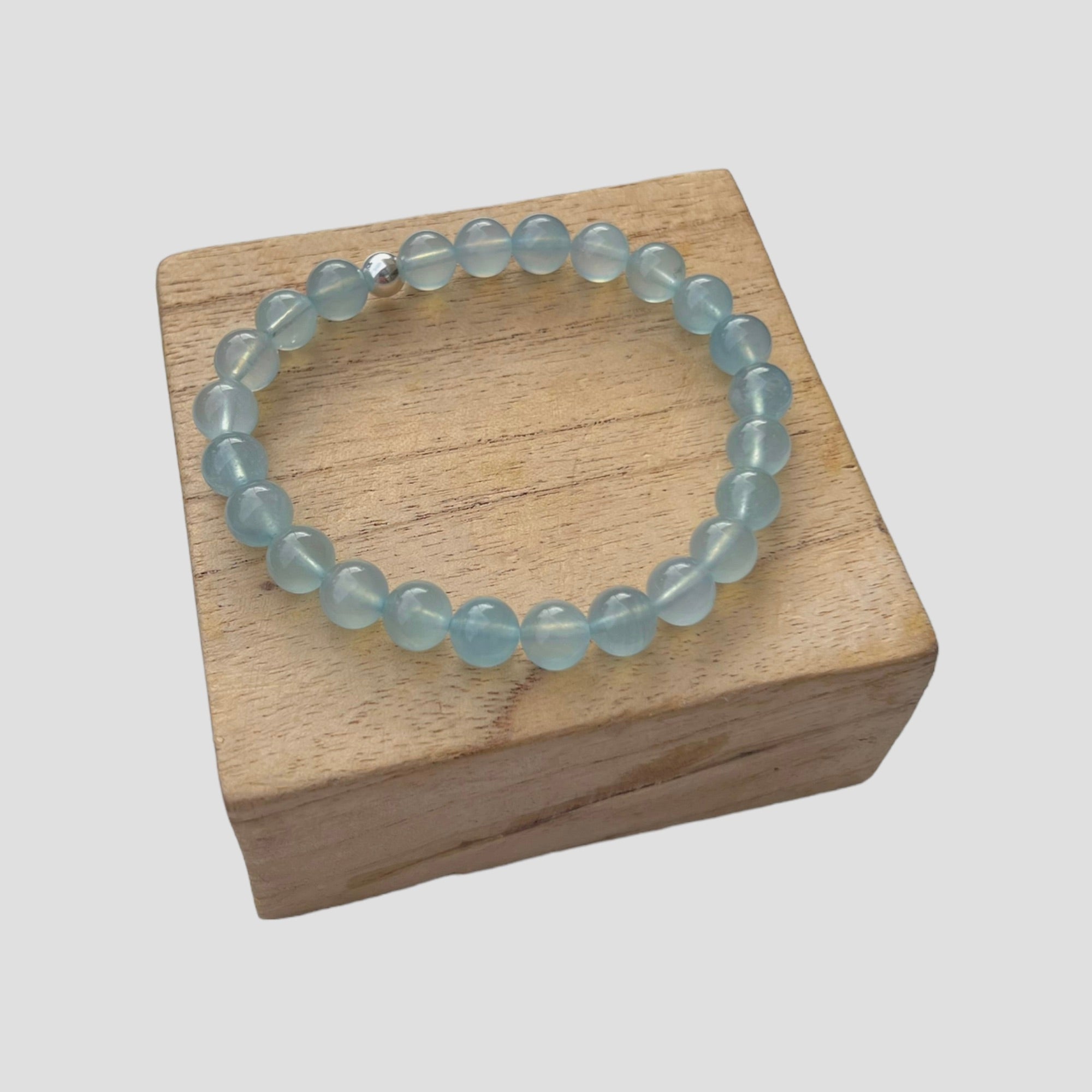 Pierres naturelles non teintées de 8mm monté sur fil très résistant. Fil garanti 2 ans* avec perle en argent 925/1000 ou hématite.