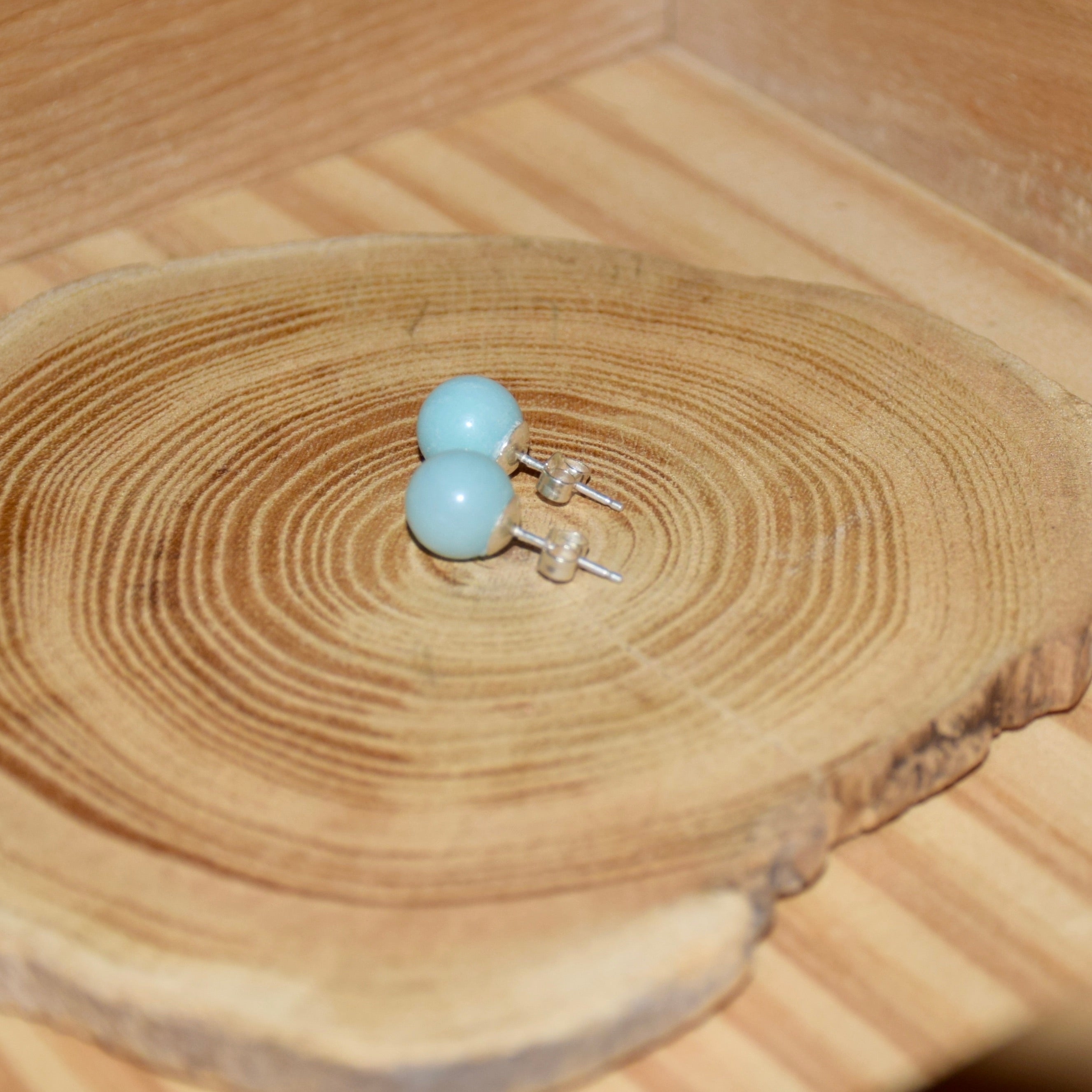 Boucles d'oreilles amazonite du Pérou 10 mm montées sur argent 925/1000