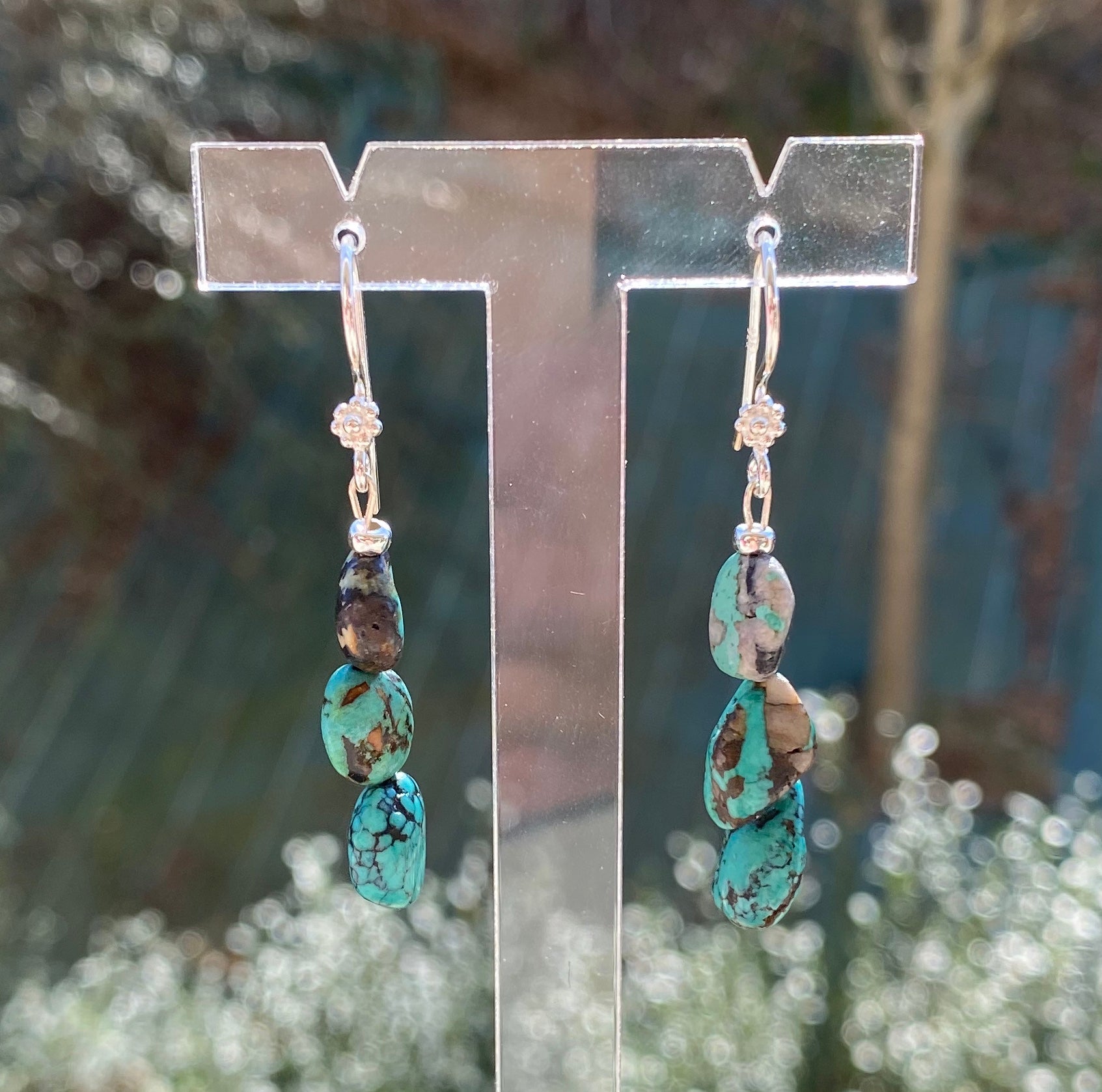 Boucles d'oreilles en turquoise monté sur crochet en argent 925.