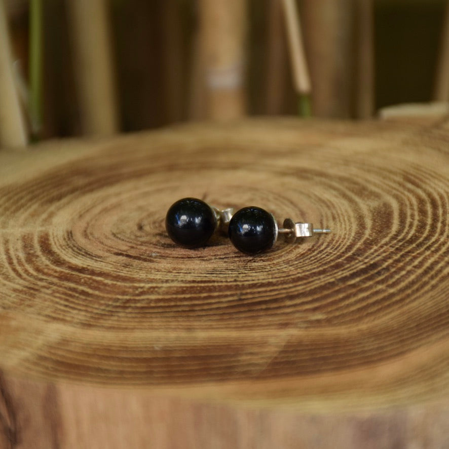 Boucles d'oreilles en obsidienne tout est en argent 925/1000, pierres de 6 mm.