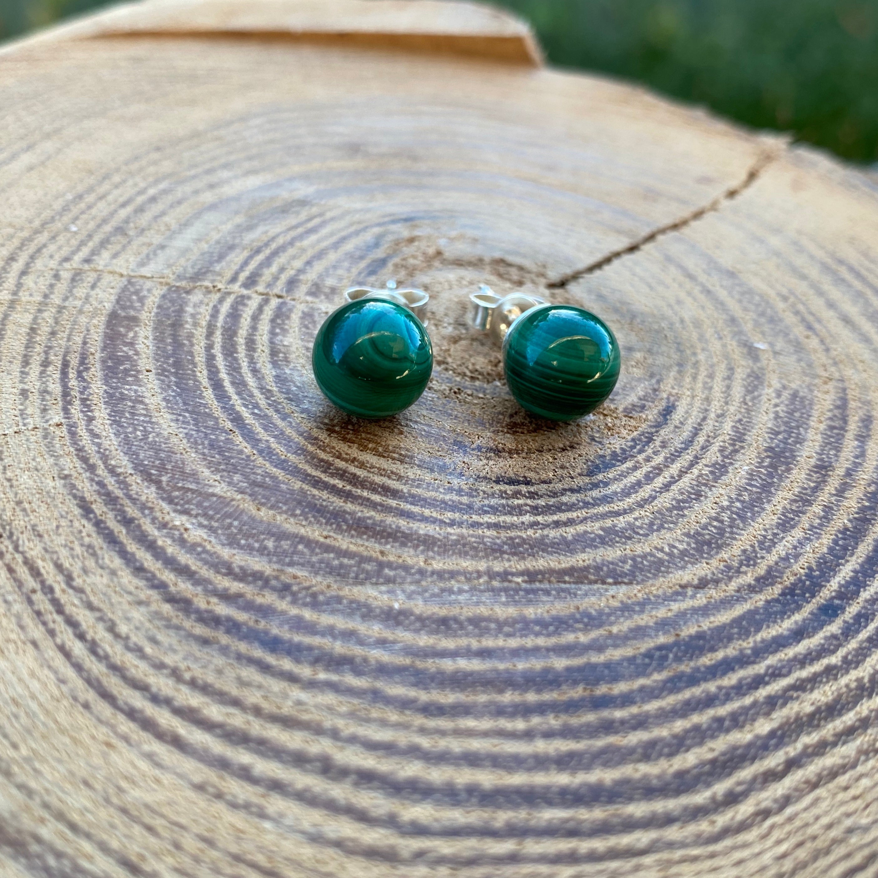 Boucles d'oreilles en malachite "8mm"