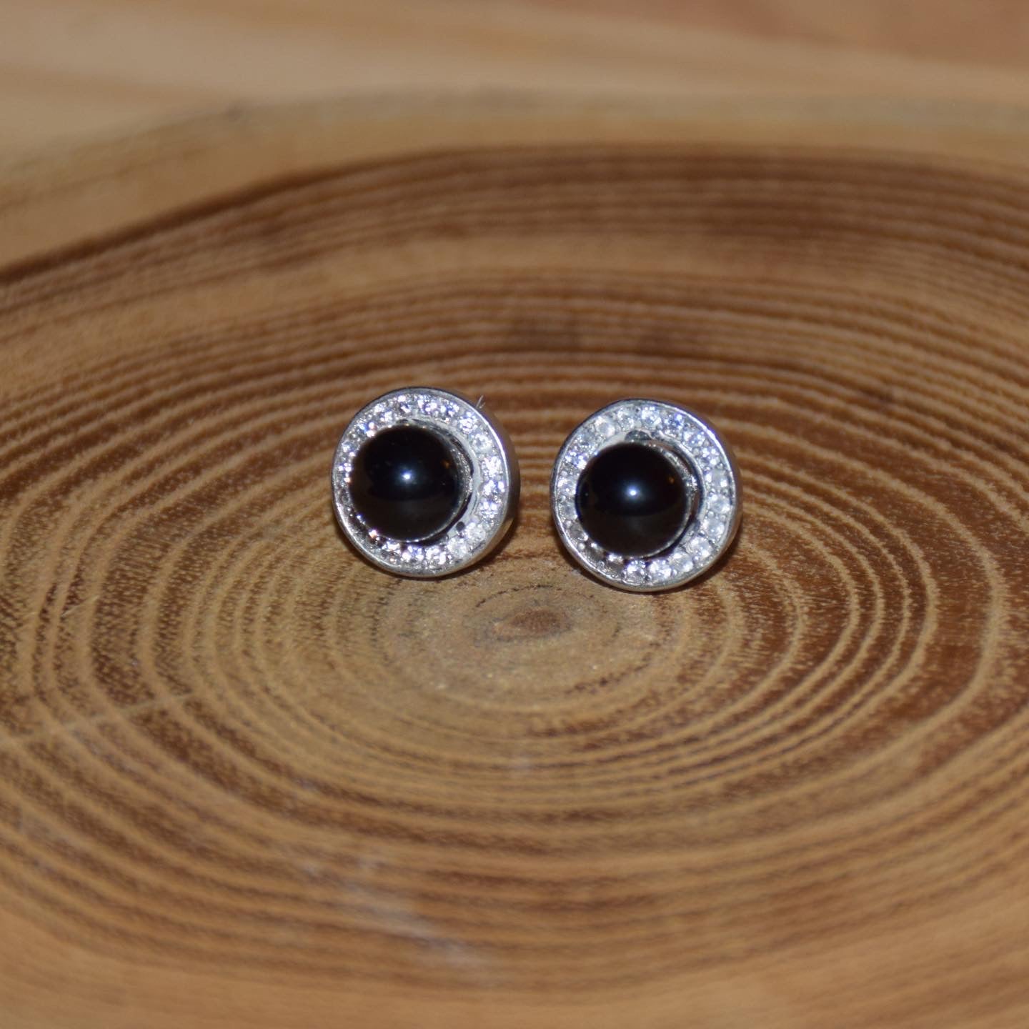 Boucles d'oreilles argent strass rhodié onyx