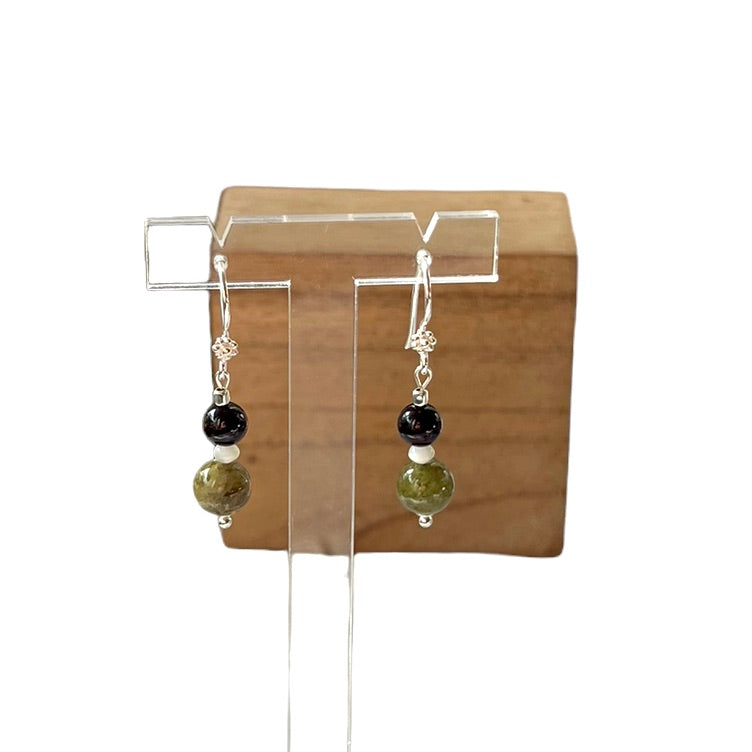 • Boucles d'oreilles en grenat rouge et grenat vert tout en argent 925/1000.