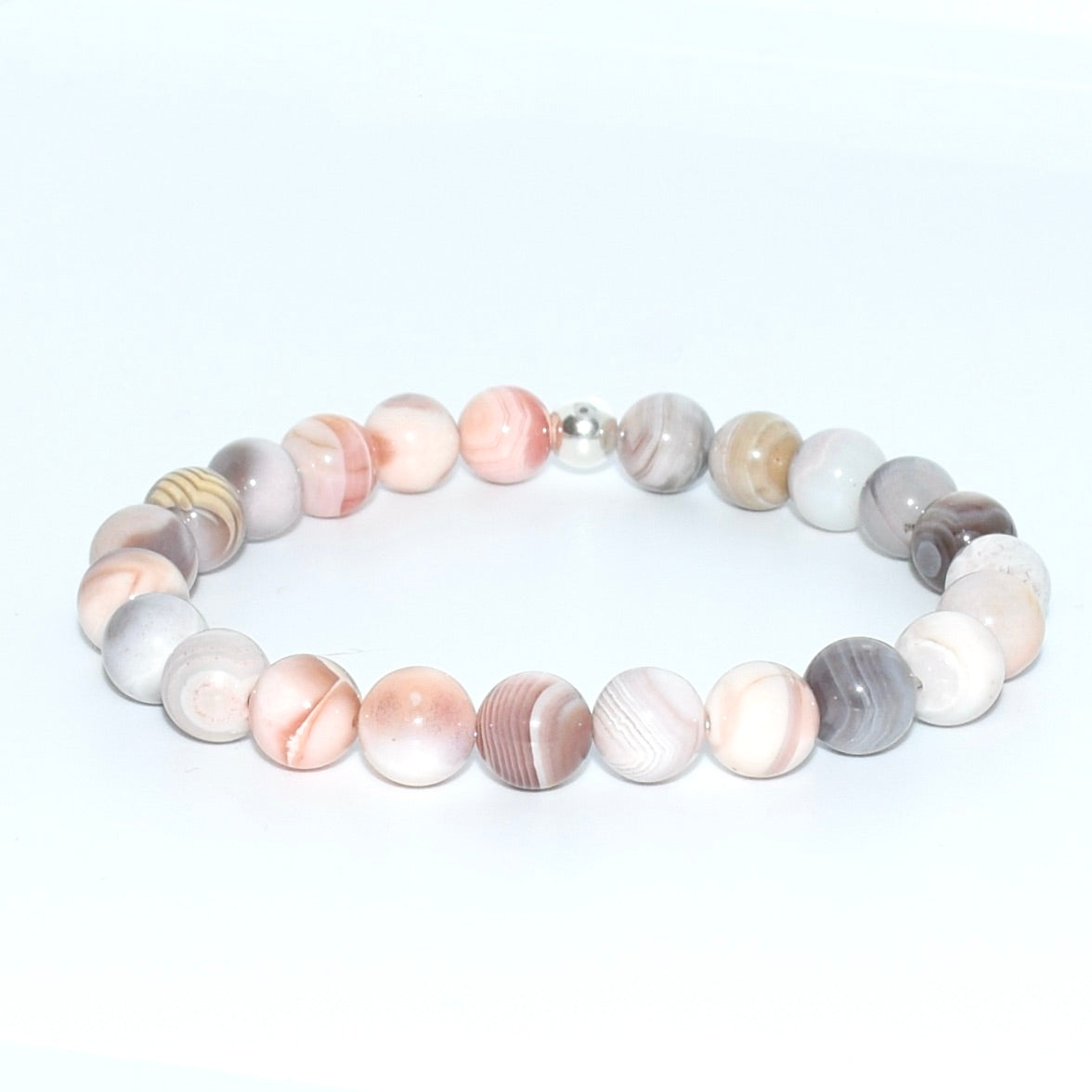 Pierres naturelles non teintées de 8mm monté sur fil très résistant. Fil garanti 2 ans* avec perle en argent 925/1000 ou hématite.