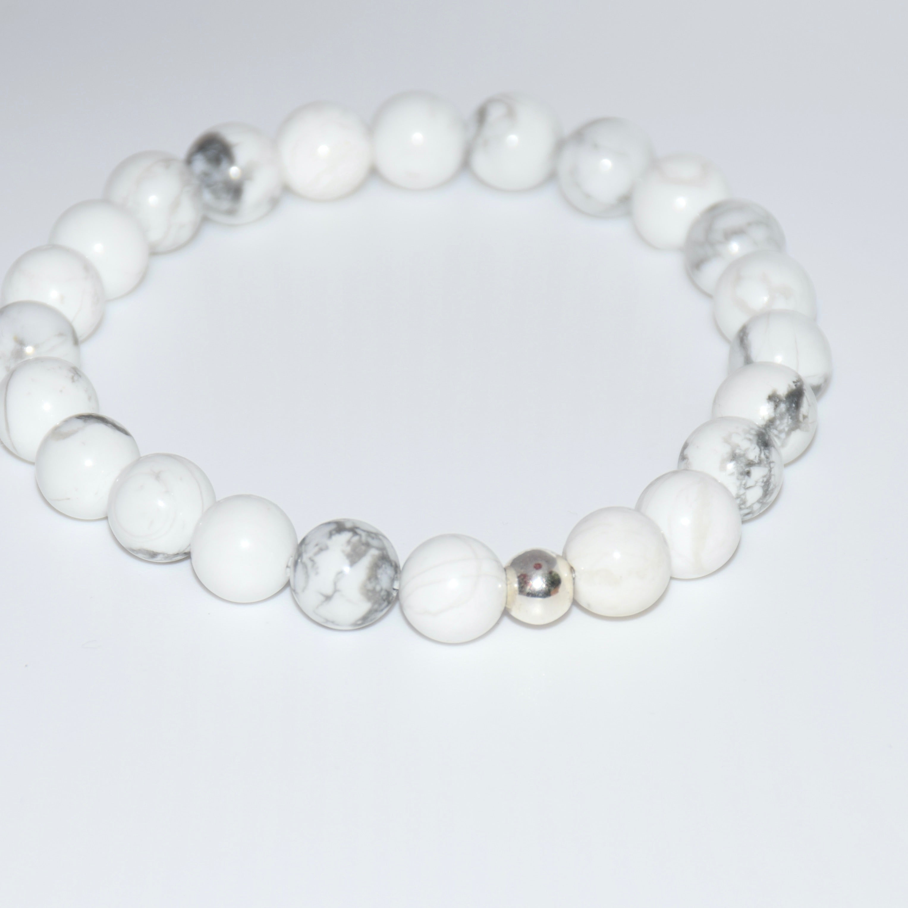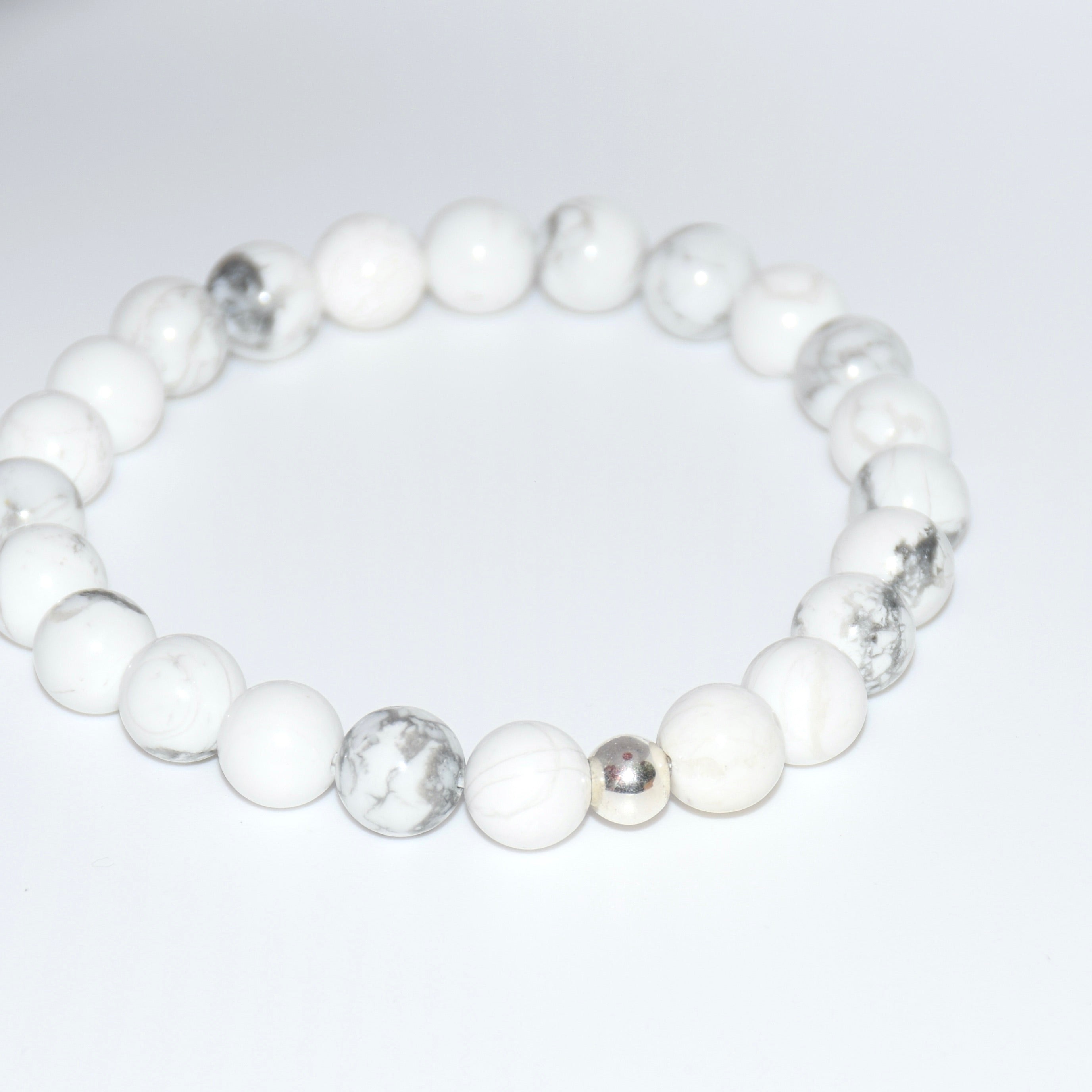 Pierres naturelles non teintées de 8mm monté sur fil très résistant. Fil garanti 2 ans* avec perle en argent 925/1000 ou hématite.