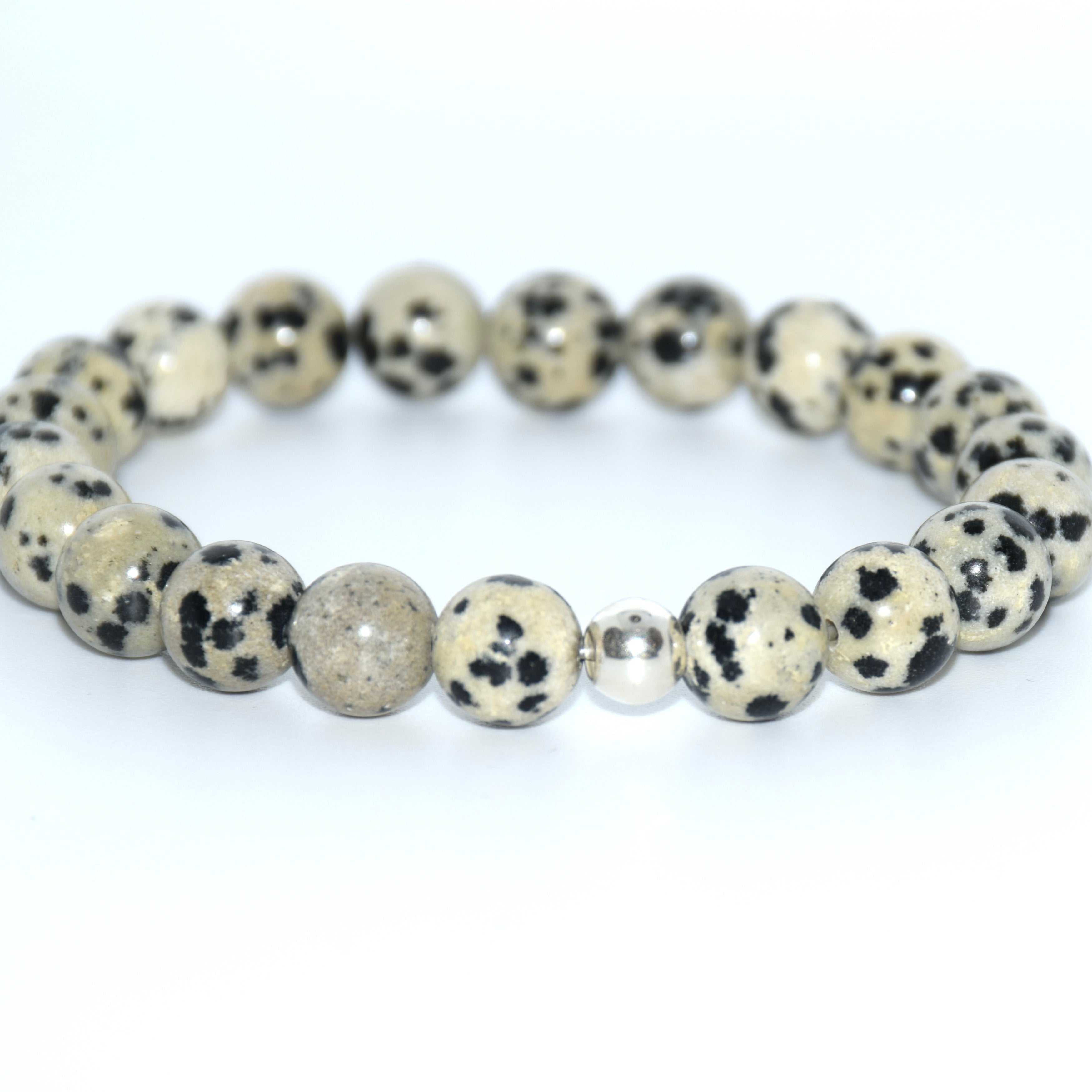 Pierres naturelles non teintées de 8mm monté sur fil très résistant. Fil garanti 2 ans* avec perle en argent 925/1000 ou hématite.