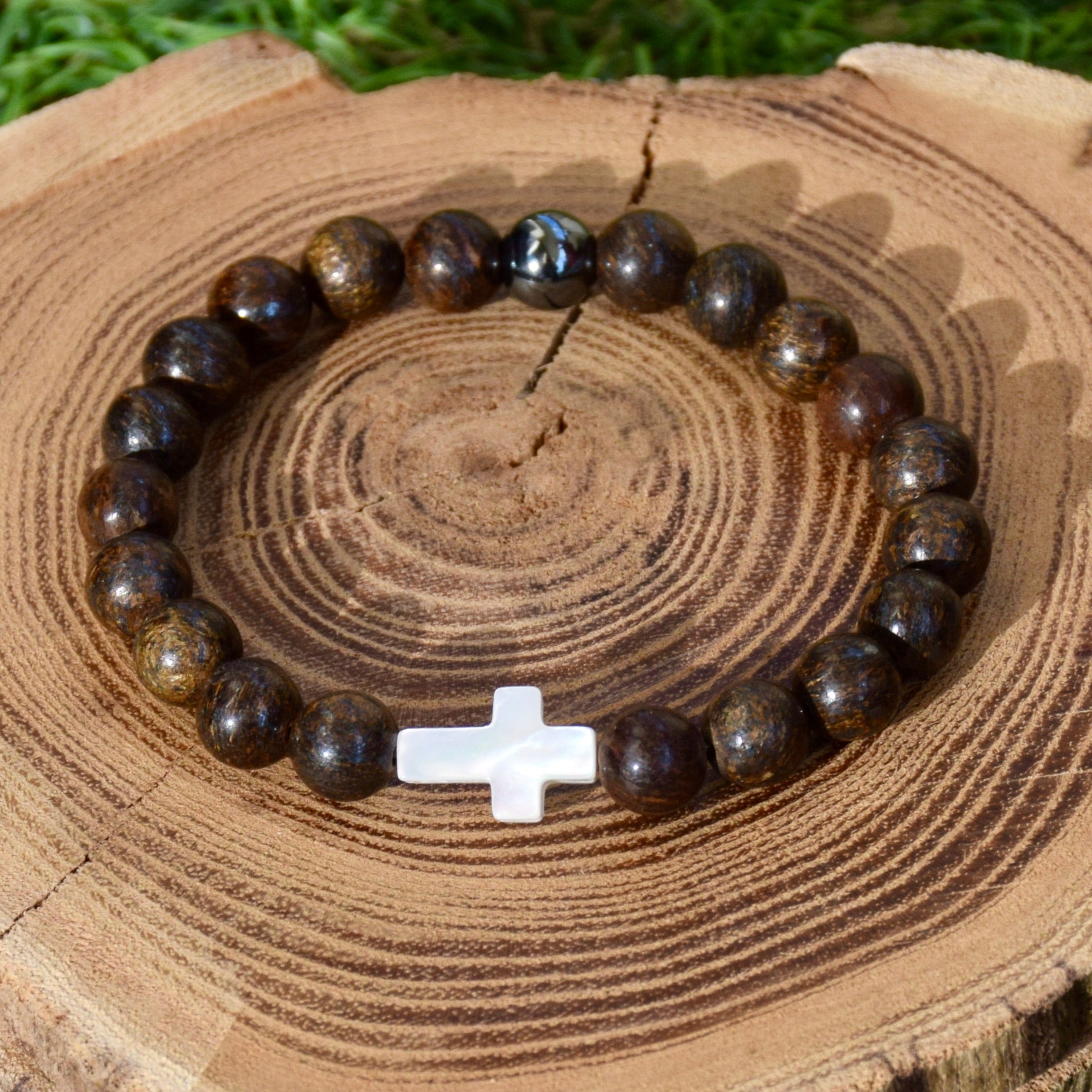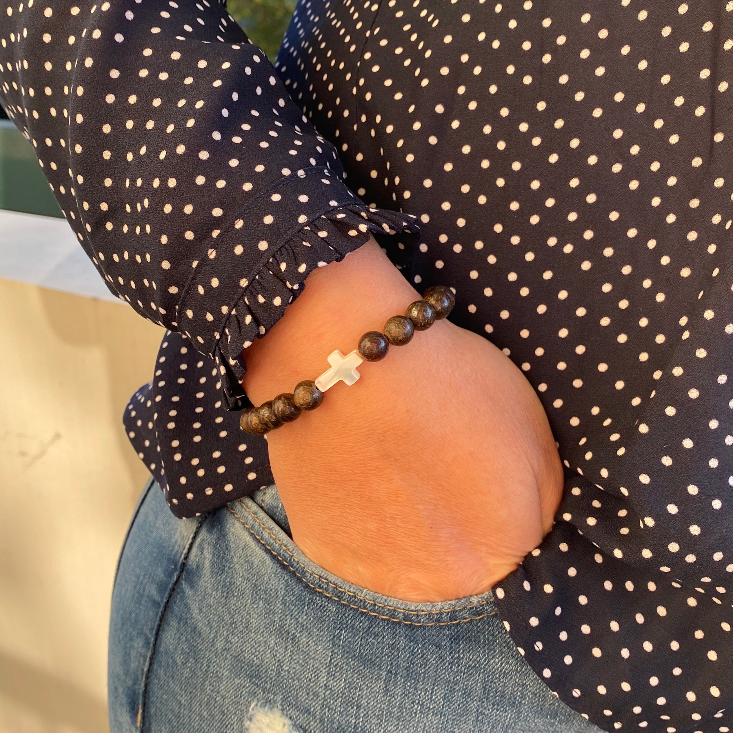 StyleBronzite avec croix en nacre et perle en argent 925/1000