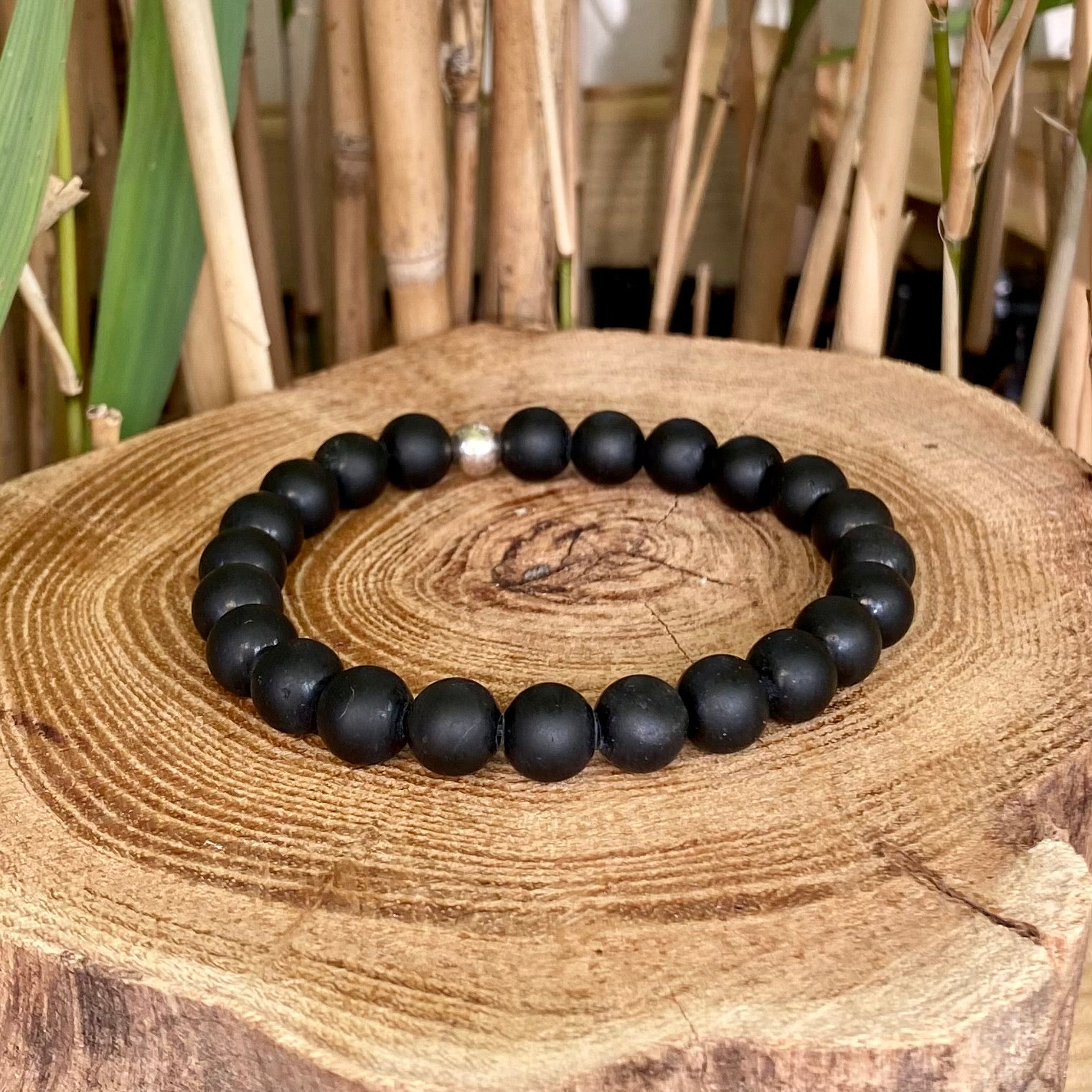 Bracelet en obsidienne mat