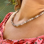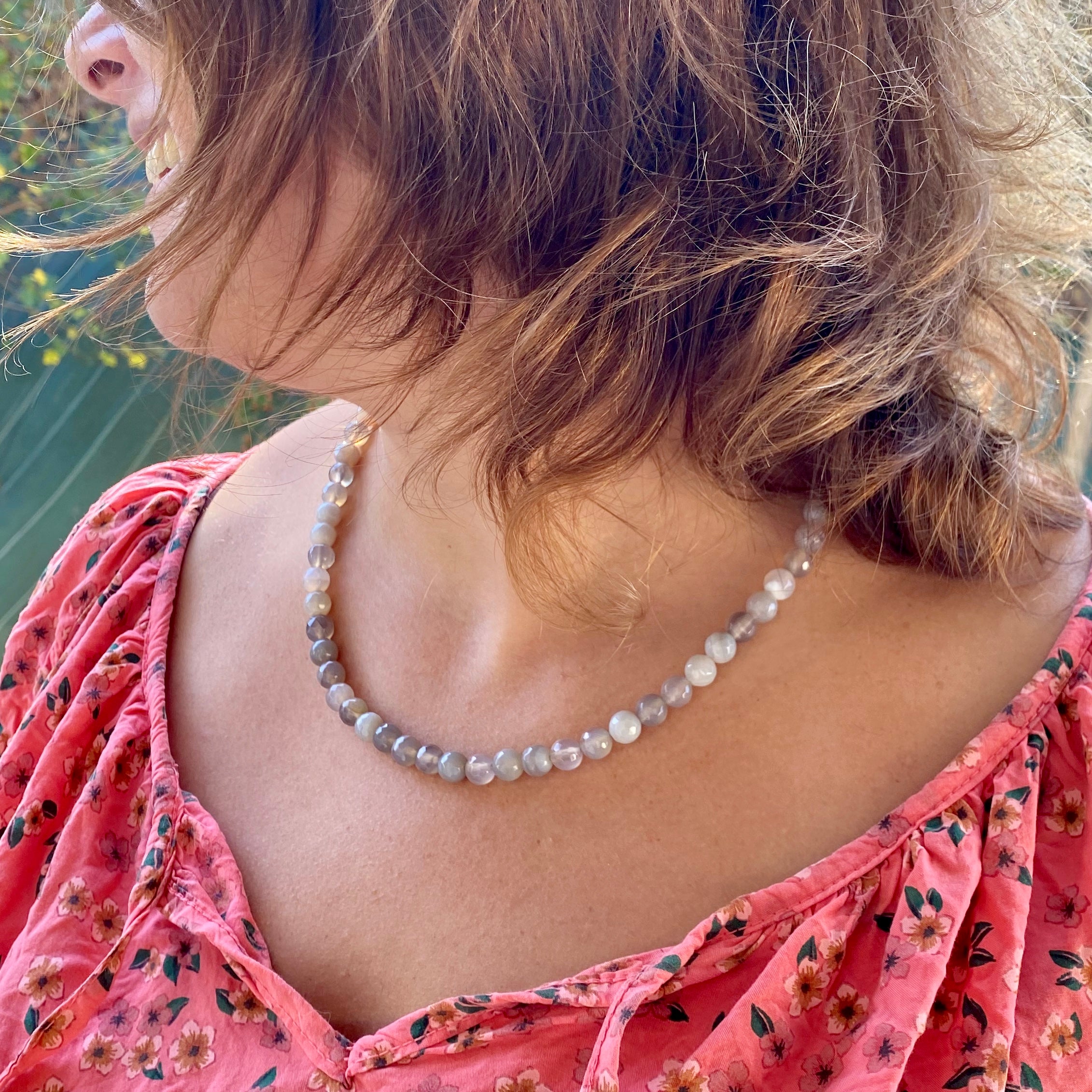 Collier en agate gris naturelle 8mm, monté sur un câble avec fermoir en argent 925/1000.