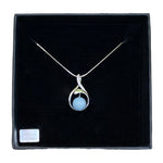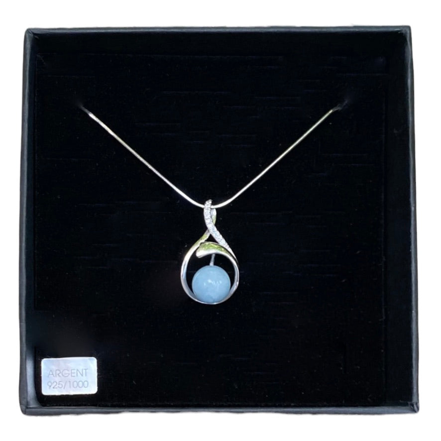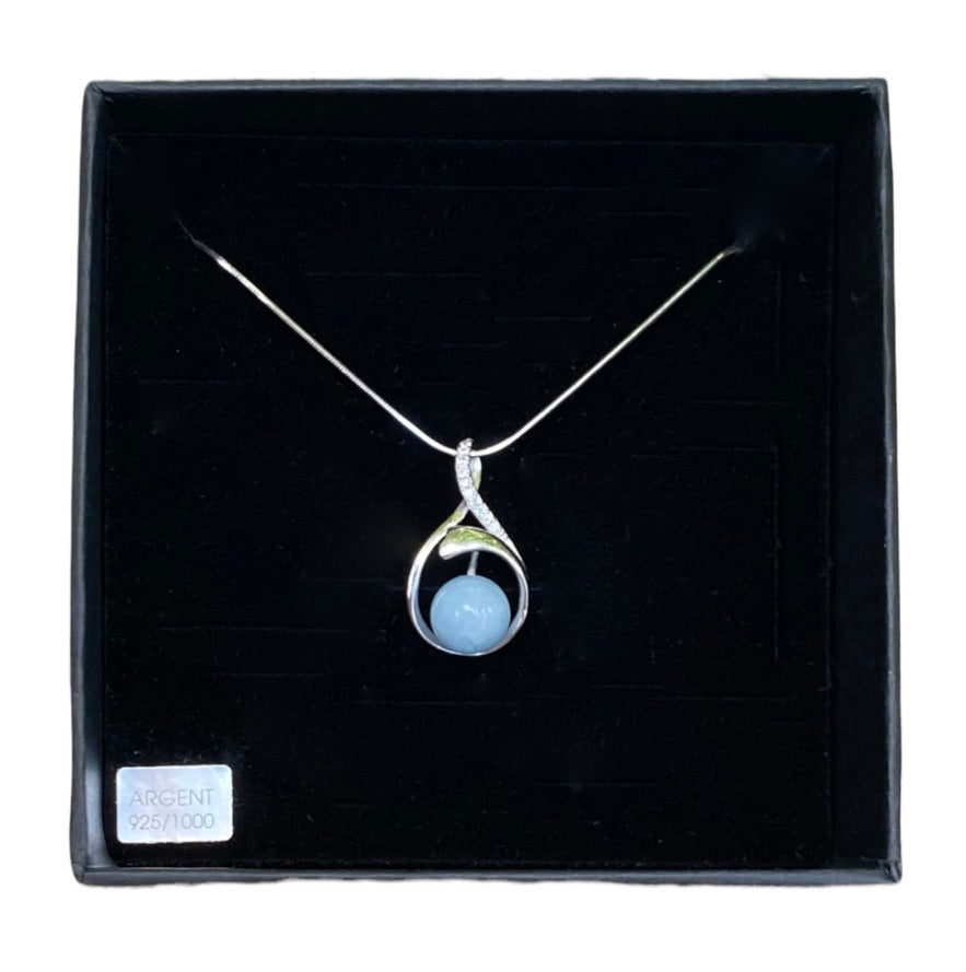 • Pendentif en aigue marine avec strass rhodié tout en argent 925/1000.
