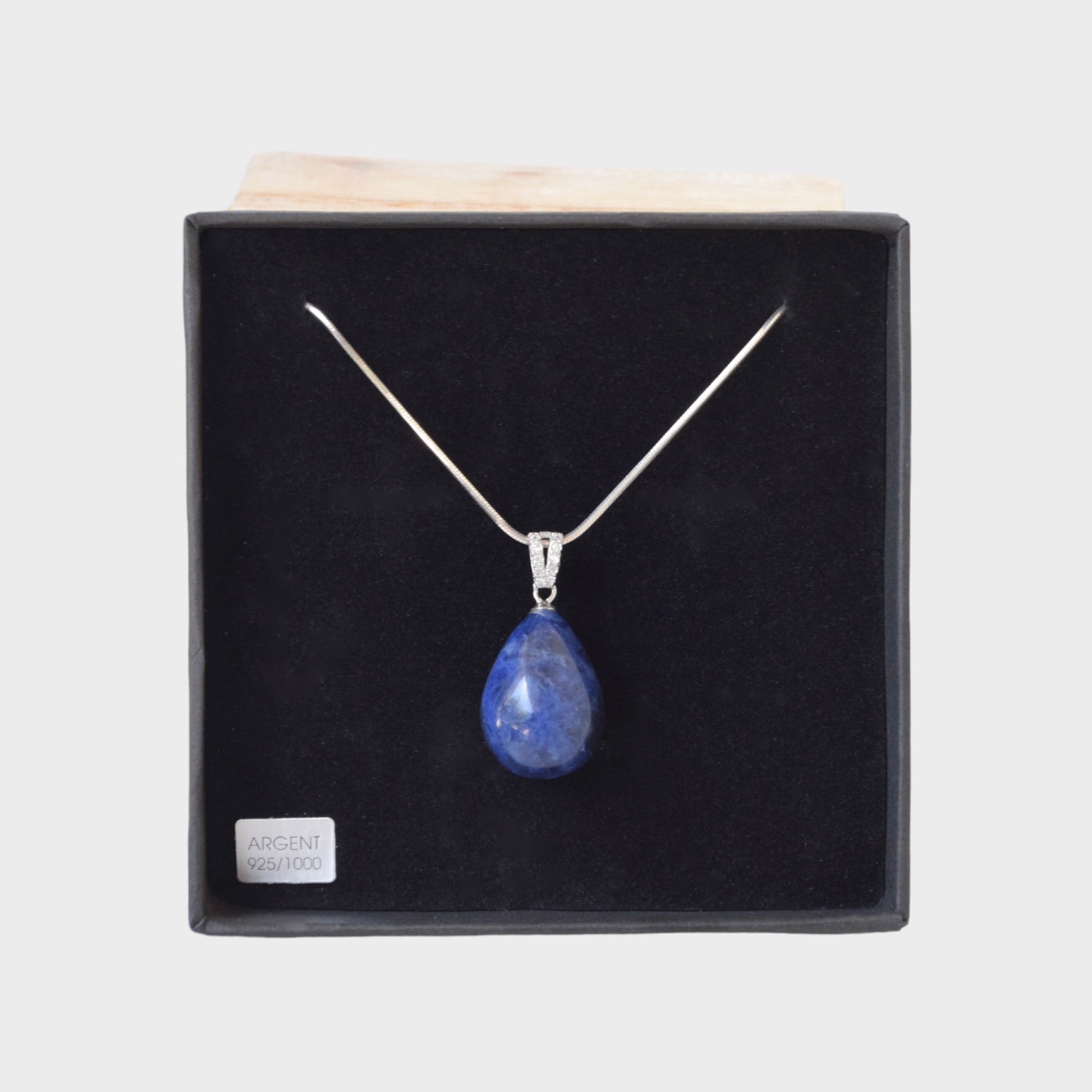 • Magnifique pendentif en sodalite avec bélière tout en argent et strass rhodié.