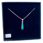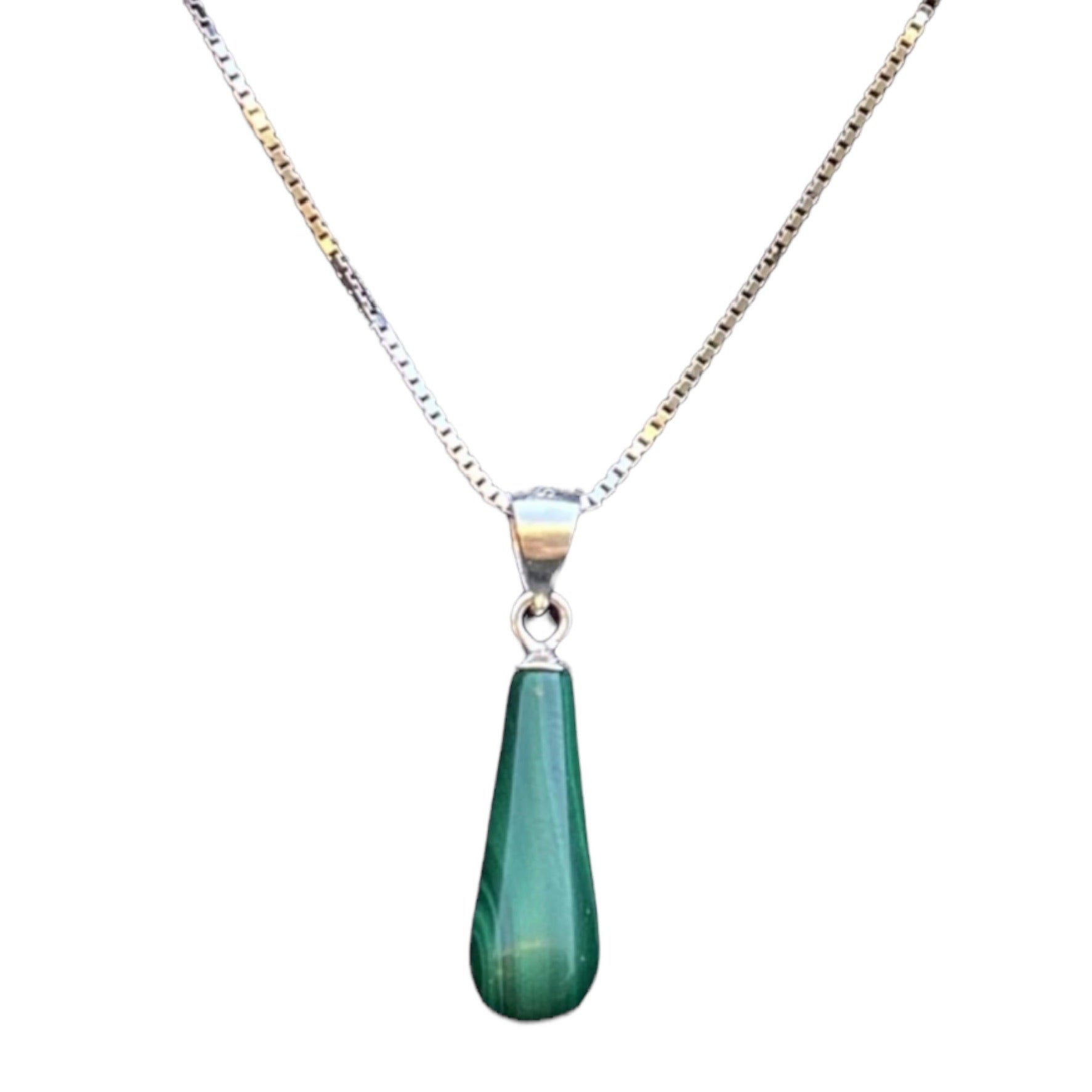 • Pendentif avec malachite en goutte, monté sur chaine et fermoir en argent 925/1000