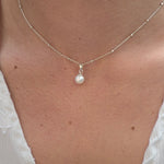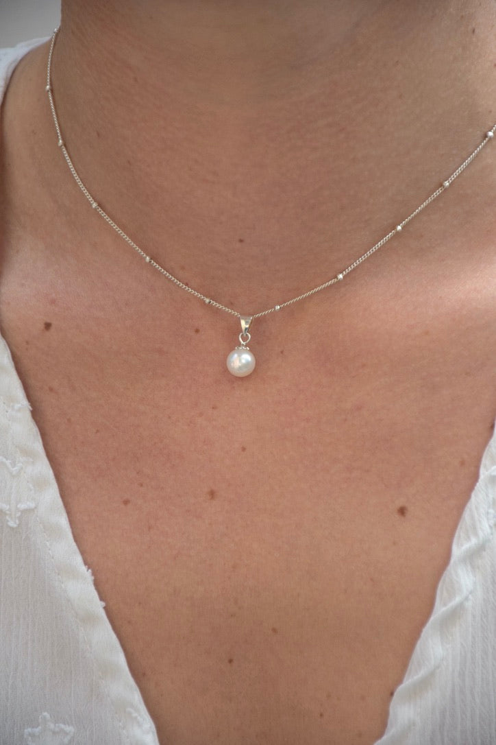 • Pendentif avec perle d'eau douce montĂ© sur argent 925/1000 et chaine, fermoir en argent 925/1000.