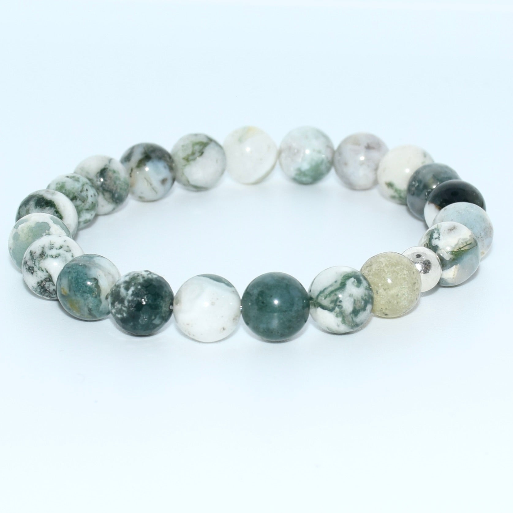 Pierres naturelles non teintées de 8mm monté sur fil très résistant. Fil garanti 2 ans* avec perle en argent 925/1000 ou hématite.