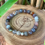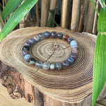 Pierres naturelles non teintées de 8mm monté sur fil très résistant. Fil garanti 2 ans* avec perle en argent 925/1000 ou hématite.