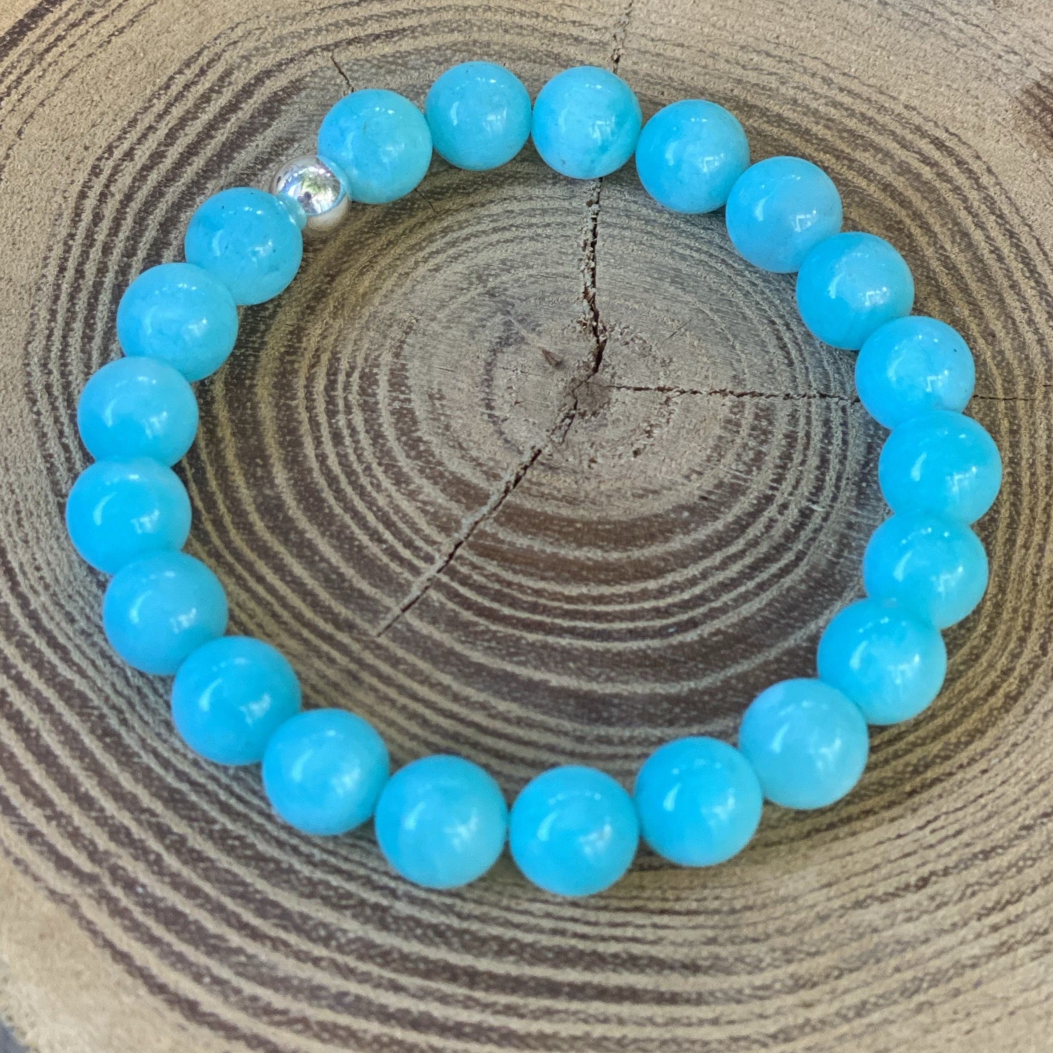 Pierres naturelles non teintées de 8mm monté sur fil très résistant. Fil garanti 2 ans* avec perle en argent 925/1000 ou hématite.