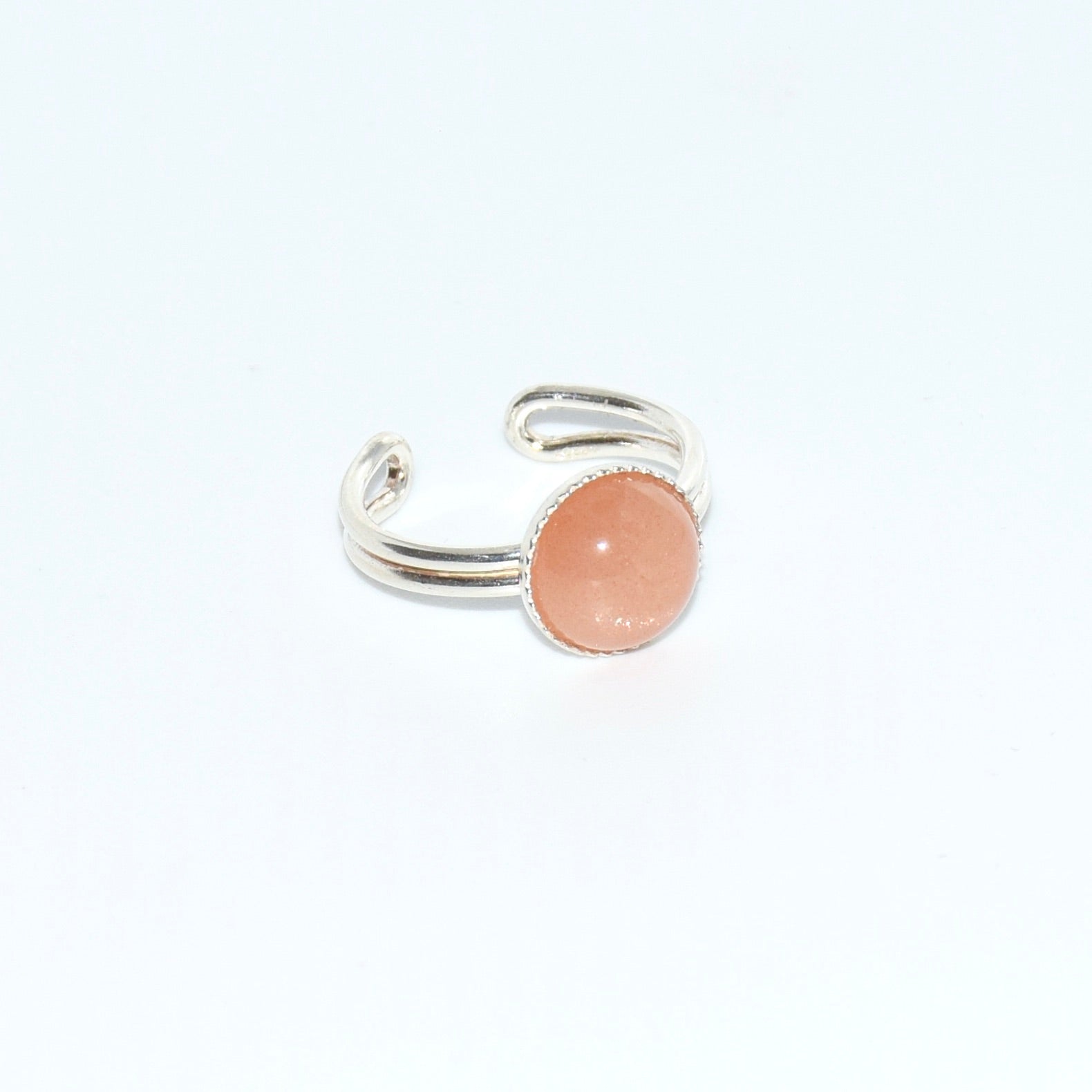 • Bague réglable en argent 925/1000 avec pierre naturelle en pierre de soleil.