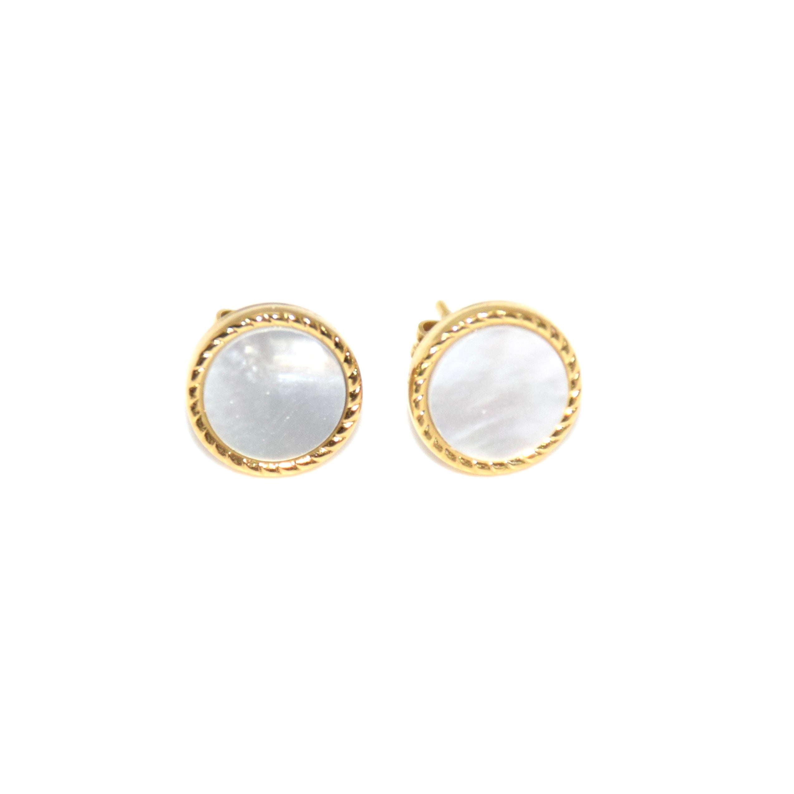 • Boucles d'oreilles en acier inoxydable avec pierre naturelle en nacre.