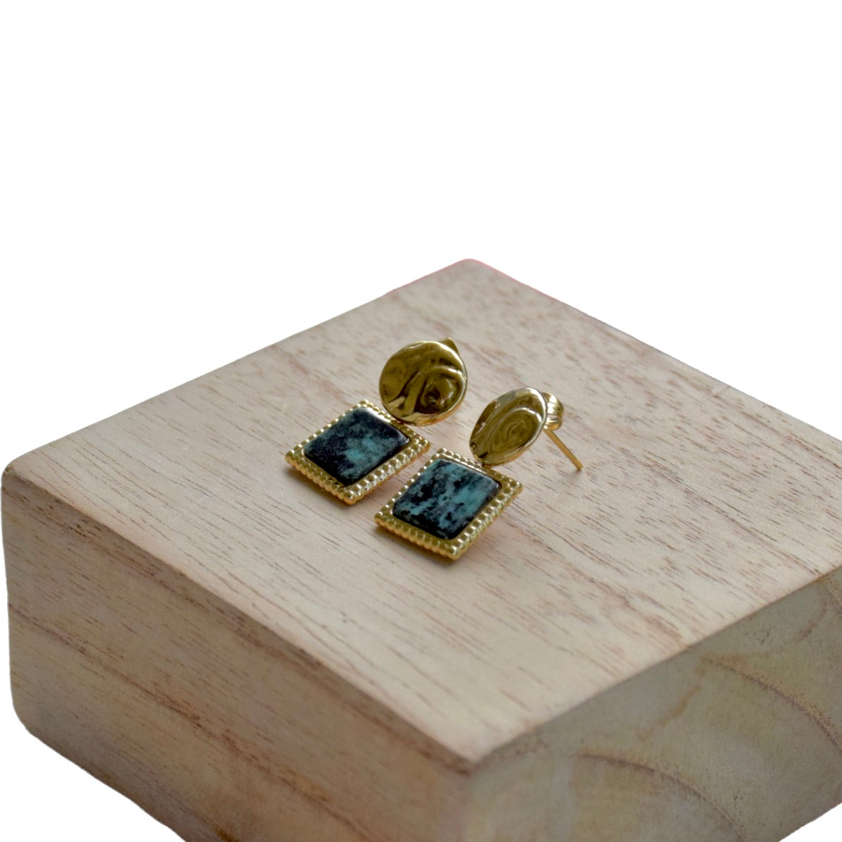 • Boucles d'oreilles en acier inoxydable avec pierre naturelle en turquoise d'Afrique