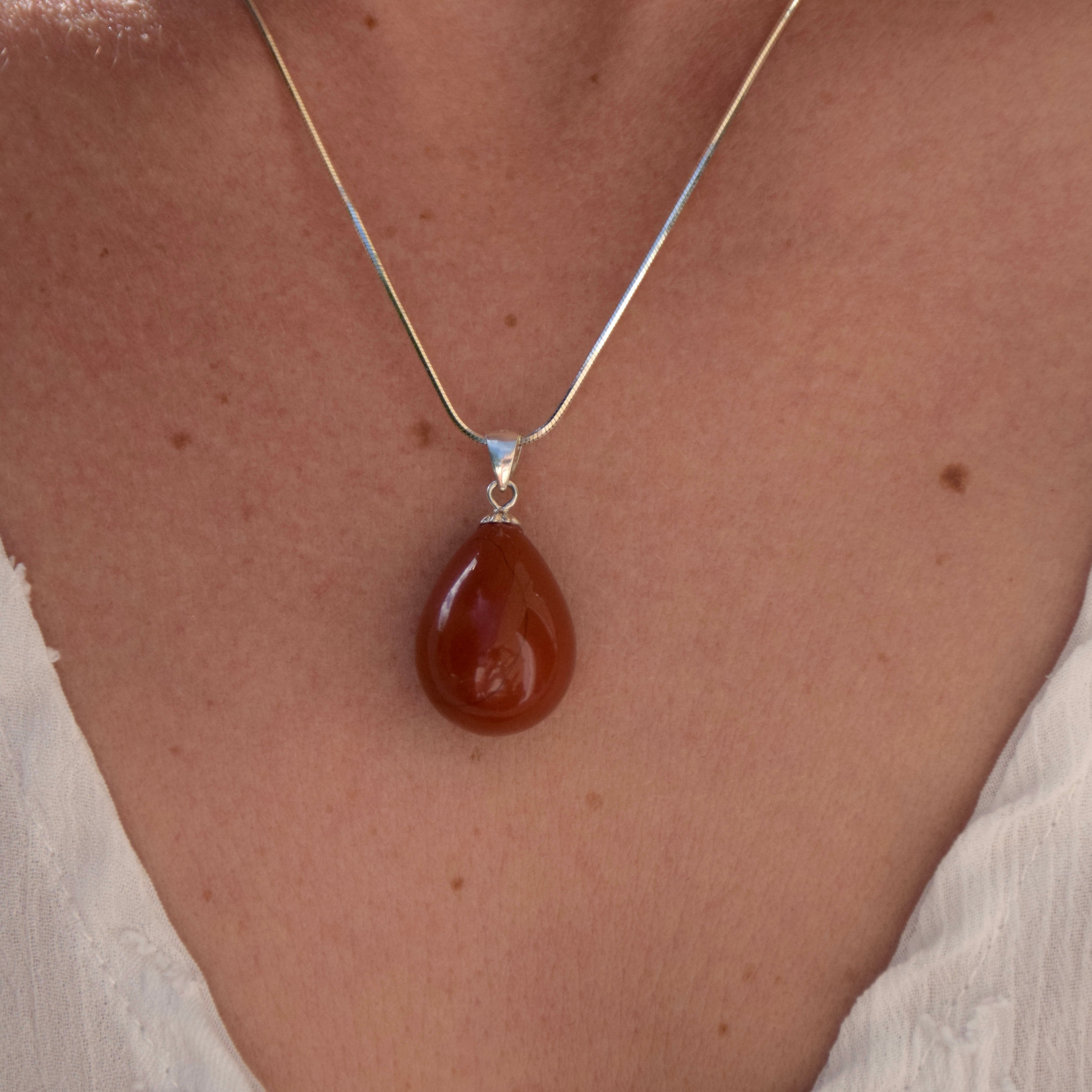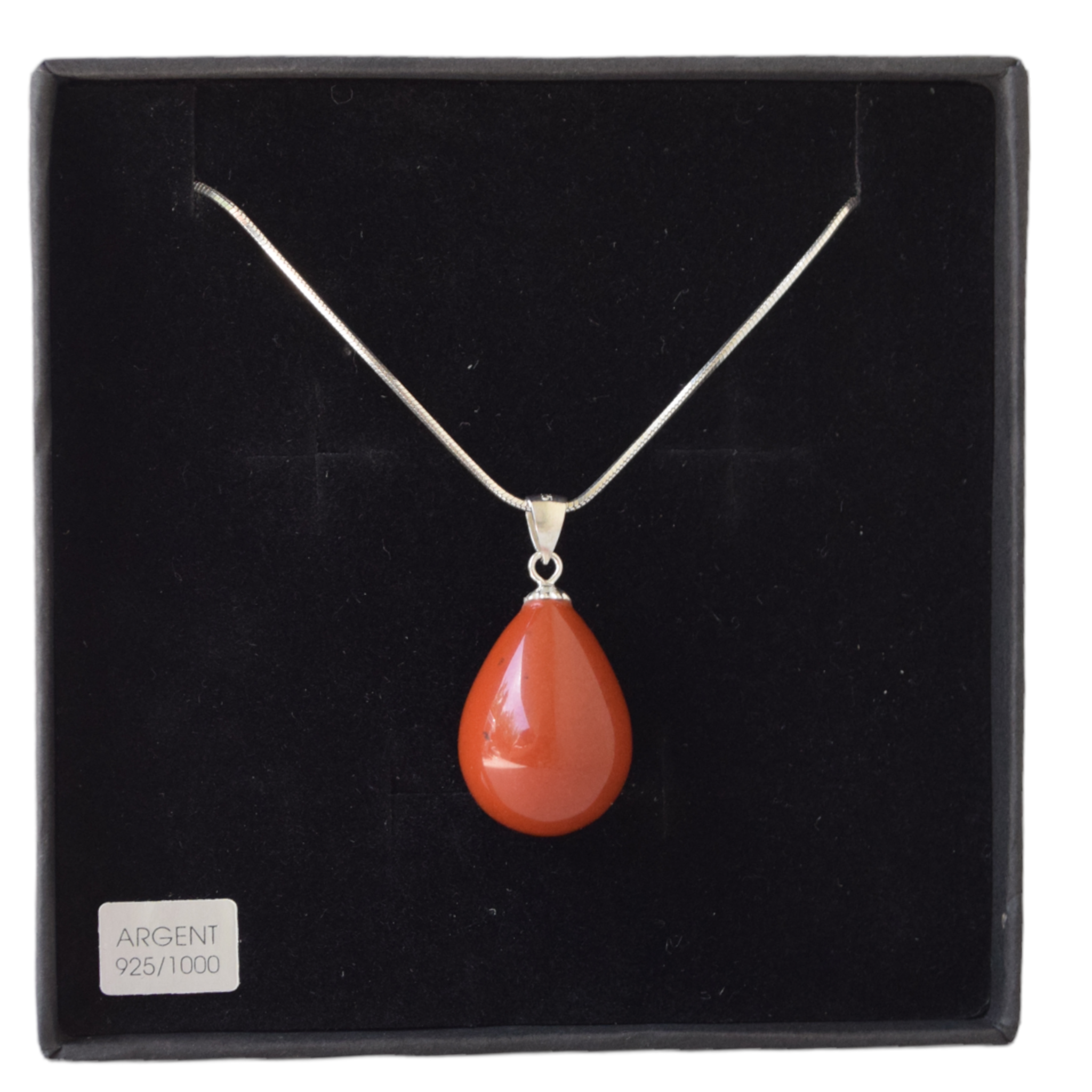 • Magnifique pendentif en jaspe rouge avec bélière tout en argent.
