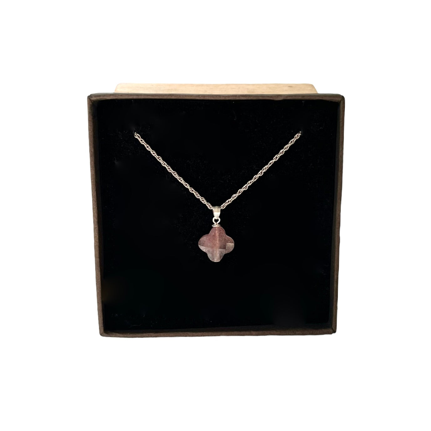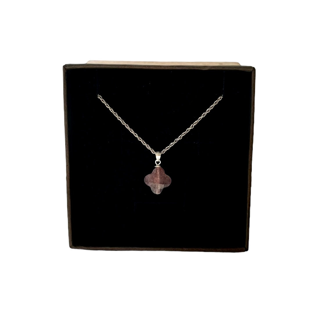 TailleQuartz strawberry avec chaine en argent de 40cm + 5cm de rallonge